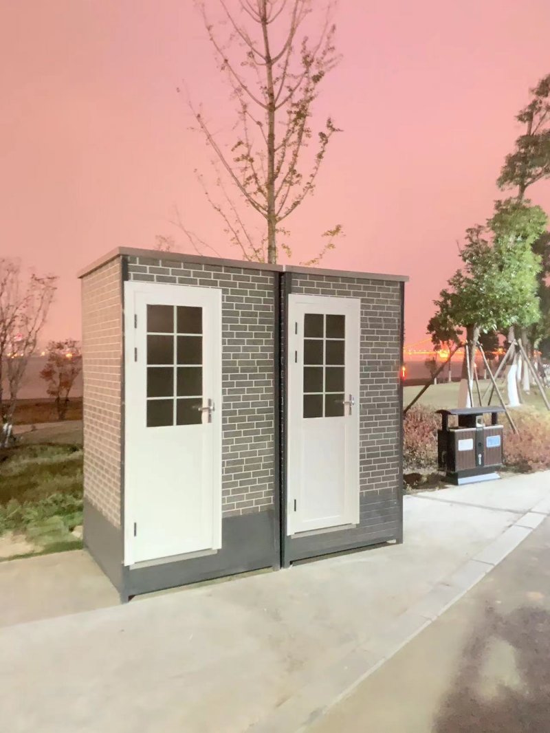 拼裝廁所;在廠里做好各個廁所部件,再到現場組裝在一齊,適合不易運輸的大型廁所。這座箱式廁所,女廁5個蹲位內配工具間,男廁2個蹲位+2小便斗,第三衛生間由殘疾馬桶、助力洗手盆和兒童馬桶、兒童洗手盆外加嬰兒臺等設施。廁所前后有窗,通風采光,前部走廊裝有屋檐,防雨防曬。此廁所位于公路綠道邊,整體大氣,功能齊全,造型美觀,是一道難得的靚麗景觀!